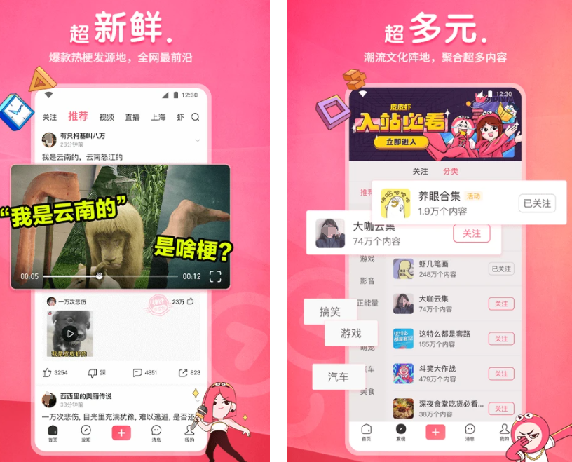有非常多活跃用户在线做视频,是潮流热梗视频的发源地,在关注页面与推荐页面都可以刷到许多搞笑的短视频,点赞还能触发彩蛋,更多精彩视频等你下载来刷。