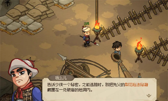 那现在到梨花枪法的获取方式,玩家在拉杨幺儿进队,拿到杨家的牌之后,可以去新手村破庙里面开启战斗模式,然后打烂烛台。这时候就会出现一个地下入口,只要我们手持牌子进去寻找到箱子,打开就可以获取到非常强力的梨花枪法这本秘籍了!