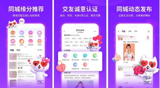 软件上的用户都是经过实名认证的,所以每个用户的照片和认证内容都是可以信任的。软件上提供很多的互动方式,只有足够多的互动才能让彼此有更加深刻的认识,才能遇到真正合适的另一半。