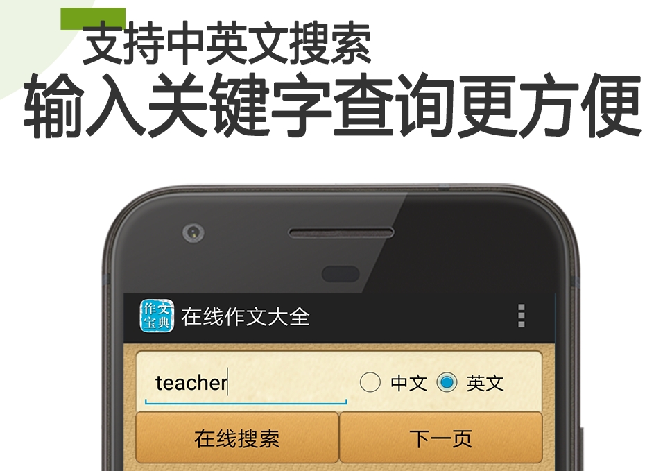 软件主要面向的就是各个不同年纪阶段的学生,同时里面也有数万篇不同的作品,让用户就算没有网络也能实时的查看,直接通过关键字搜索查询也会方便许多,还有英语作文带给大家哦。