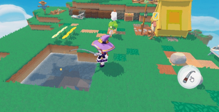 一切准备就绪之后就可以正式开始钓鱼了,每个玩家的家园中都会有如上图所示这一处水塘,来到水塘边上屏幕右边会弹出一个钓竿图标,点击之后你的角色就会进行垂钓,钓上来的鱼种类比较随机,钓到新品种时还会扩充你的图鉴。