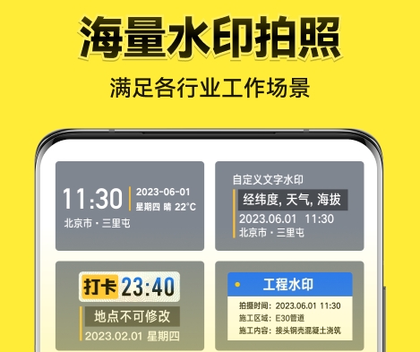 作为一款专业化程度非常高的水印相机类软件,它里面拥有拍照以及自动生成等多种不同的功能,让大家能时刻去进行生活的记录,包括自定义水印以及时间打卡等,让小伙伴们可获得一个良好的拍摄体验。