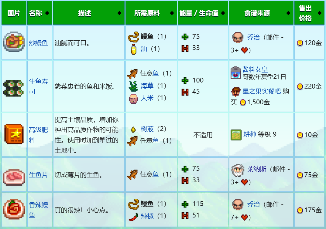 而购买的话,只能在旅行货车里购买,但是这种方式也是比较随机的,而且价格比较高,一般在255到1000金之间。旅行货车每周五和周日会出现在森林里,可以去看看有没有鳗鱼出售,如果有的话,还需要斟酌一下售价然后再选择是否入手。
