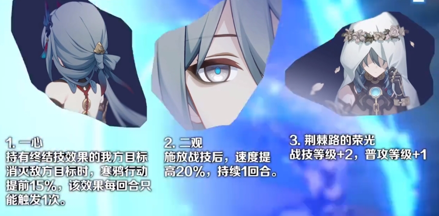 其实寒鸦这个角色的强度还是在线的,如果大家要抽卡的话还是可以抽一抽的,她在攻击效果上面甚至是带来了强化的,如果想在游戏中使用这个角色的话,其实可以多关注一下终结技能,寒鸦在使用终结技能的时候会让己方一个队友的速度升升,而且带来的上升数值是原来寒鸦的24%。