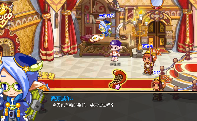 6,麦斯威尔:这个NPC是专门发放委托任务的,大家在进行游戏的时候,日常活动都会要求玩家们去接取一次委托任务,非常的重要,大家可以在【城堡大厅】中找到这个NPC哦!