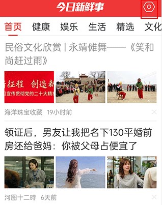 1.打开今日新鲜事应用,点击界面右上方的“设置”按钮;