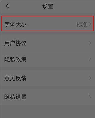 2.然后我们选择“字体大小”,点击一下即可进行修改;