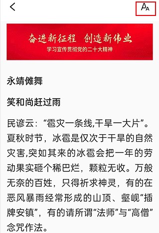 3.另外资讯详情页的左上角有一个“AA”图标,点击也能进行设置;