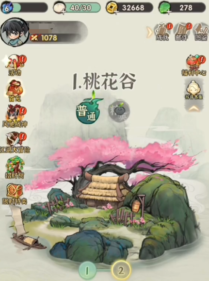 桃花谷共有三个小关,分别是桃花谷1-1、桃花谷1-2和桃花谷1-3。每个小关都有不同的敌人和难度,我们只需跟着剧情流程走即可,有前期资金压力的可以反复对刷。桃花谷1-1是最简单的小关,只有一个敌人,是一个手持桃花扇的女子。玩家只需要不断地攻击她,就可以轻松取胜。如果玩家有桃花扇的话,可以使用桃花扇的技能,可以造成更大的伤害。
