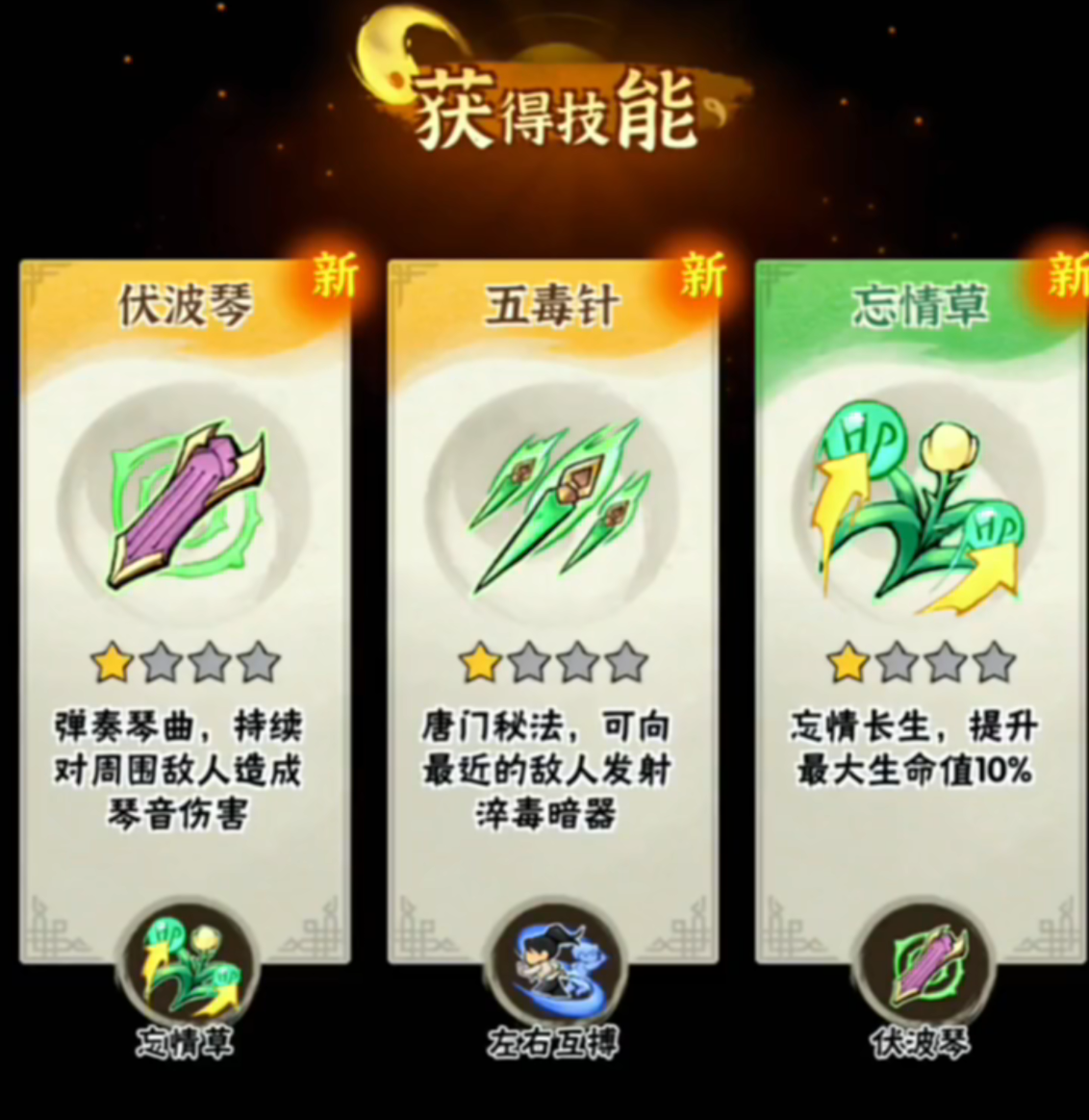 桃花谷1-2是比较困难的小关,有两个敌人,分别是一个手持刀轮的男子和一个手持伏波琴的女子。玩家需要注意两个敌人的技能,刀轮可以发射刀光,伏波琴可以发射音波,碰到就要持续掉血。这就对我们走位要求较高,避开敌人的攻击,同时寻找机会反击。如果玩家有刀轮或伏波琴的话,可以使用它们的技能,可以对敌人造成更大的伤害。