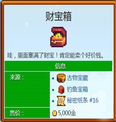 星露谷物语财宝箱是游戏中一个高品质稀有物品,获取很困难,但是不少玩家手上有这个物品却不知道该如何用,今天小编就给大家解读星露谷物语财宝箱怎么用。该宝箱一般只有在古物宝藏或者开钓鱼宝箱的时候才能获得,那么对其作用和使用方法不了解的小伙伴,一起来看看吧。