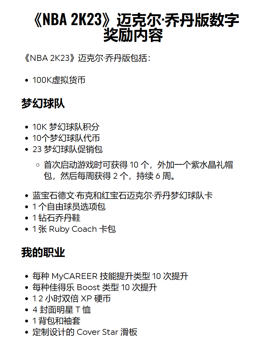 nba2k23多少钱其实要看你要买哪个版本。标准版:399元、数字豪华版:599元、迈克尔·乔丹版:799元、WNBA版:399元(仅限美国地区,实体版)、PGA TOUR X NBA 2K23捆绑包:699元。本作的玩法对比上一代丰富了不少,在生涯模式中,你可以创建你自己的球员,从高中开始打造你的传奇生涯,参与NBA选秀,加入你喜欢的球队,与NBA或WNBA的球星们一起竞争,感受逼真的游戏体验。而梦幻球队模式里面,我们还可以收集你喜欢的球员卡,将全明星与永恒传奇配对,打造你的梦之旅,与其他玩家进行在线对战。