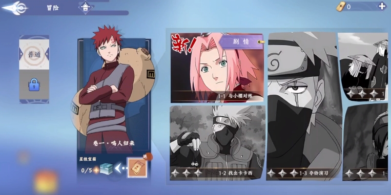 之后可以打开冒险挑战一下里面的剧情副本,这些副本不仅能够原汁原味的让你感受原作剧情,而且首通的资源奖励也十分丰厚,这些资源可以积攒起来然后去培养一下主练的忍者伙伴,前期的话推荐养鸣人,因为用他过渡性价比最高。
