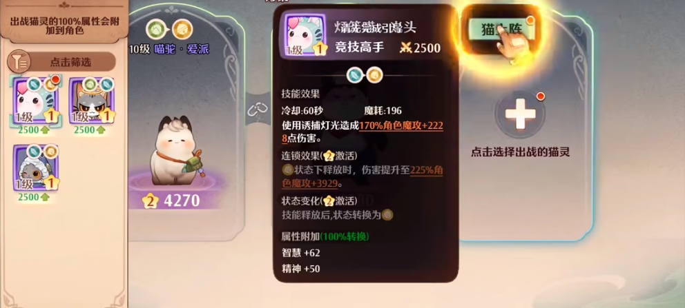 铃铛的使用方法也很简单,只要在地图上找到铃铛的开启点,就可以进入副本。每张地图有三个固定的开启点,但每天开启的地点是随机的所以要仔细寻找。进入副本后玩家可以选择不同的难度,挑战不同的小游戏。小游戏的类型有很多比如拼图、连线、记忆、反应等,考验玩家的智力和技巧。完成小游戏后玩家可以获得各种奖励,还有一定的概率获得成品金卡。金卡是一种可以提升猫灵属性的道具,有不同的品质和效果,是玩家追求的目标之一。