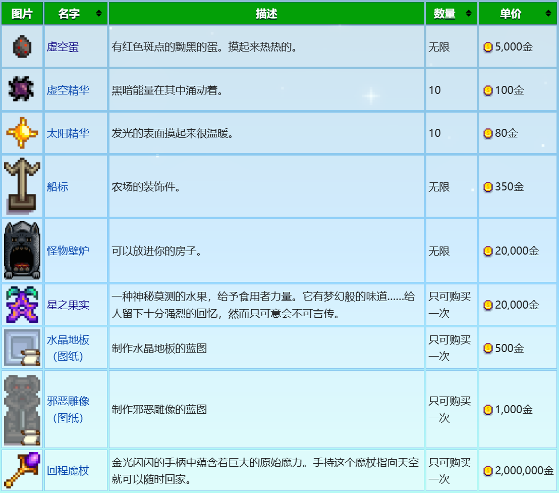而在下水道里可以找到科罗布斯的商店,他会出售一些特殊的物品,比如船标、怪物壁炉、虚空精华、太阳精华、虚空蛋等。他还会每天卖一样其他的物品,比如星之果实、水晶地板配方、邪恶雕像配方等。还可以找到一个不确定的雕像,它可以让你改变属性。需要付给它10,000金,然后选择一项技能进行更改。当天晚上睡觉时会重新选择5级和10级的职业。只能改变已经选择了职业的技能,改变后原来的职业加成会消失,还可以在下水道里钓鱼,有机会钓到传说中的变种鲤鱼,以及它的后代放射性鲤鱼。
