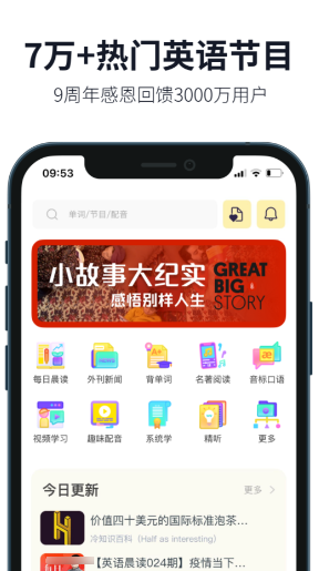 通过海量热门的优质英语节目让大家可以轻松获取听力资源,囊括了名著阅读、单词听写、外看新闻等诸多的板块和内容。