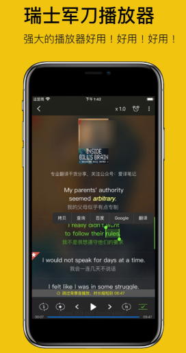 软件带有专业的英语听力资源播放器,不仅可以随时暂停,还可以直接在软件界面中看到原文以及对应的句式、语法解析。