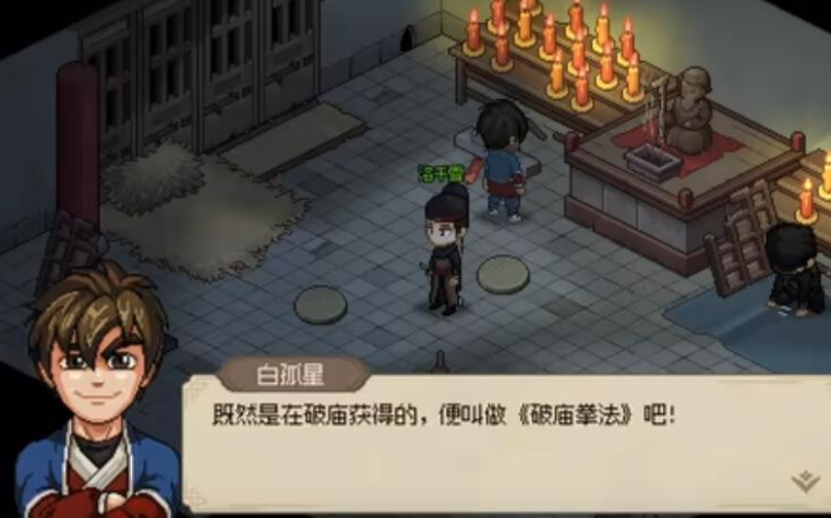 如果玩家想要学习破庙拳法,首先需要让自己的基础拳法数值达到30,只有这样才能更好的接受全新的拳法,有了这些基础的权法数值之后就可以等待夜晚来到破庙,玩家会发现破庙中洛千雪正在等待着自己,这时候可以先把洛千雪引到其他地方,然后走到神像面前,这时候在神像背后就会呈现出拳法秘籍。