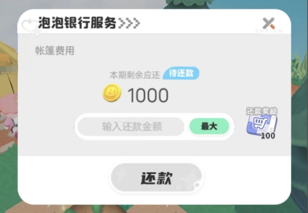 这个条件就是得完成银行的还款,还款的操作很简单,点击右边的“手机”选项,然后找到银行进入其中还款即可,不过还款它还得需要你拥有足够的金币,这个金币得在你建设家园的过程中去盈利获取,每次还款之后都可以进行家园的扩建,而且还有一定的购物券奖励!