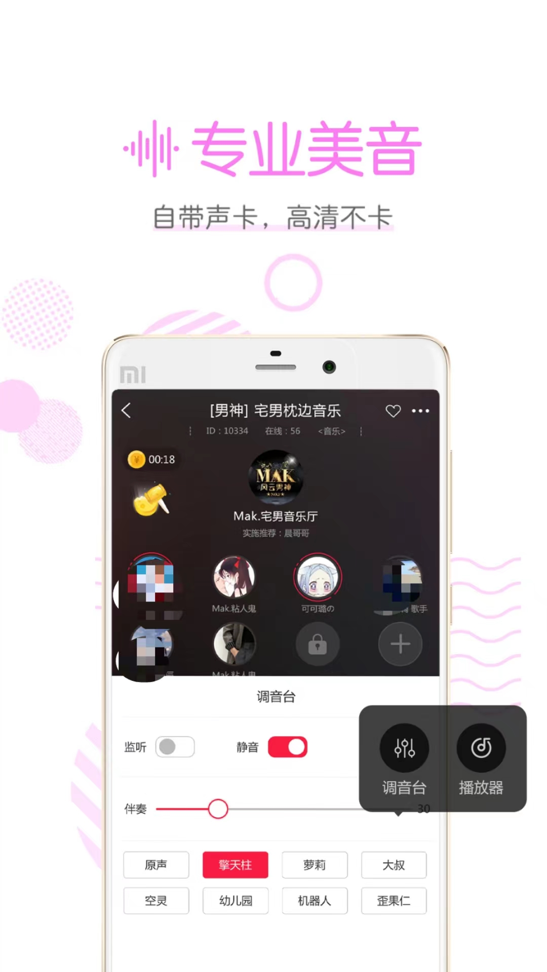 这是一款在线互动唱歌,语音交友APP在这款软件上面,你可以零距离语音社交和自己有兴趣的人一起唱歌,不仅可以接唱抢唱,在线K歌也可以边聊边唱,有各种的游戏房,闲聊语音房,为更多的爱好之类的很好的一个交流场所。