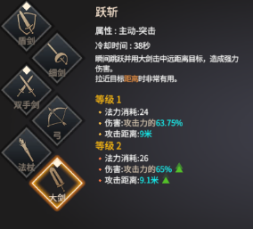 【双手剑】这个武器的话属于游戏中的一个强化版的武器了,其实小编在实战中发现了这把武器在野外单刷的时候,伤害是非常高的,武器品质只要是在紫色,几乎是可以一刀一个怪的,对于前期升级的话,还是非常不错的,可以节约非常多的时间,大家在使用这个武器的时候,可以优先把强化技能给点上,增加单体收益!