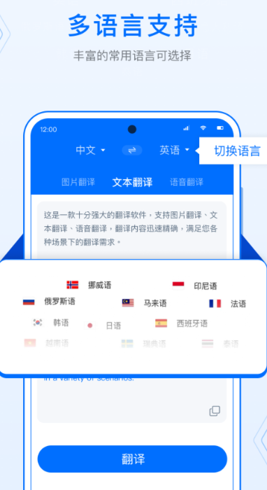 平台中可以进行多种语言翻译,比如英文、俄文、西班牙语、日语等。对于一些文本或者指示路牌等可以直接拍照上传,平台会扫面出文字,将其翻译。而且大家可以与外国人实时对话,只要语音输入录入,平台会快速翻译。