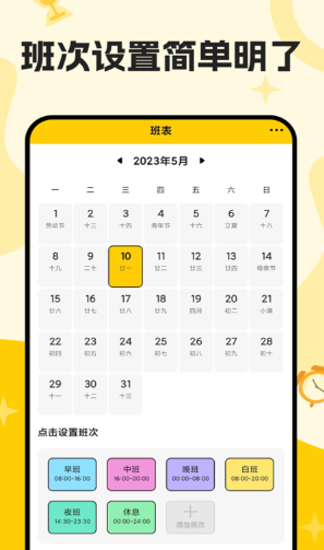 能够让我们输入班次时间和其他条件之后自动完成排班表的制作,更是可以通过日历的形式来进行显示。软件还会自动帮助我们统计工作时长,并且规避掉一些节假日。