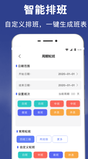 可以按照一定规律进行周期性的工作时间安排,也可以根据需求来进行自定义,软件的模式还是比较丰富的,对具体日期工作安排进行修改的步骤也比较简单。
