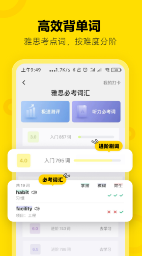 具有超高人气的备考工具,会将考点词汇编在一起,提供海量的听力材料供我们体验。软件会根据考点按照难易程度循序渐进地让我们进行练习。