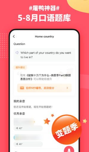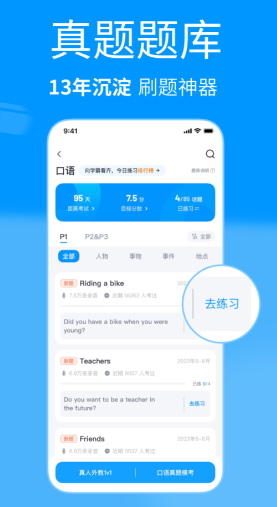 通过海量的优质题库让我们不断强化练习考点词,还带有智能AI识别技术,纠正发音错误,提高口语能力。软件每天都会更新大量的题库,让我们可以对知识薄弱点进行查缺补漏。