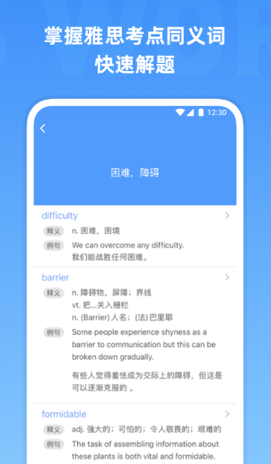 在外语学习中词汇量一直都是基础般的存在,而这款软件就会有针对性地将雅思考试中涉及到的单词进行汇总,更是分散到各种类型的题目中供我们进行学习和记忆。