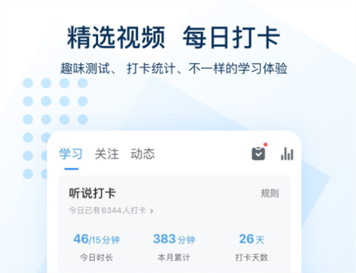 软件里面拥有多种不同的功能给到大家,其中就包括了英语的学习,像背诵单词以及每日的晨读等等,这些大家能快速的了解到,同时还有外看资讯和视频的精选,听力水平能得到快速的提高,用户发音也会更加标准。