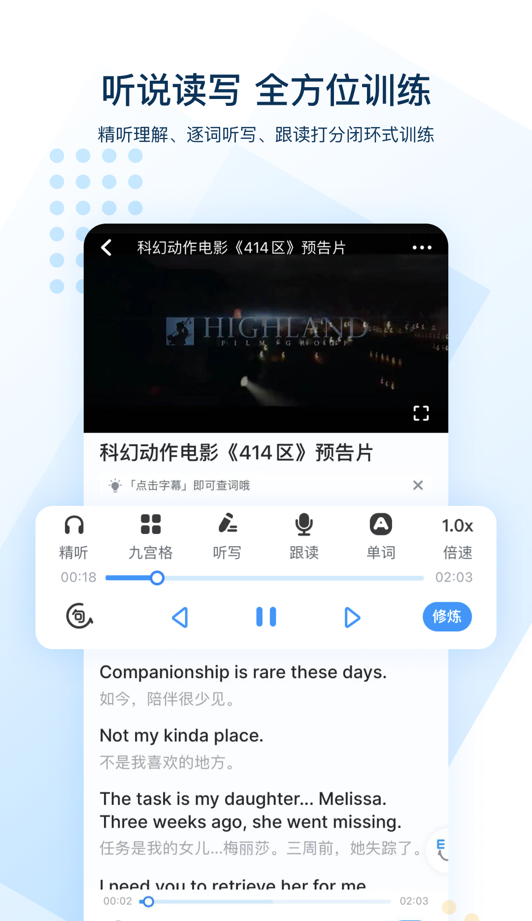 而你是学习单词还是观看视频都可以在这个软件中实现,找到对应的教材内容可以直接进行点读,这样能够锻炼大家学习地道的英语和正确的发音。