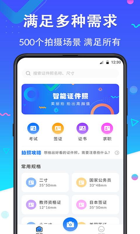 至美证件照这款软件是一款非常专业的证件照照片制作工具,在这款软件是我们能够获取到比较专业的证件照拍摄指导,所以能够有效地确保我们证件照拍摄的完整程度。同时在这款软件上大家能够先选规格再进行证件照的拍摄。