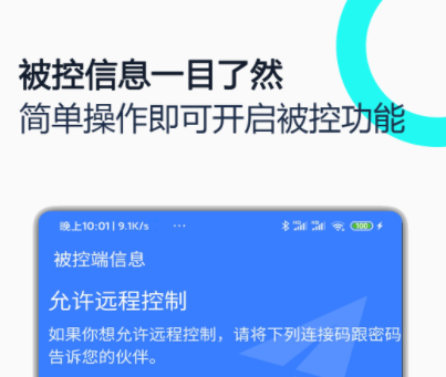 当手机出现问题需要远程帮助时就可以用到它,短短一分钟的时间就能让别人来操控你的手机,可帮你完成数据的下载和更新,就如同自己在使用一般,作为控制方可直接在自己的手机中看到对方的手机屏幕,即可在手机屏幕中就能完成对方的软件打开、手机滑屏等操作,可用来帮助客户或是朋友解决麻烦。