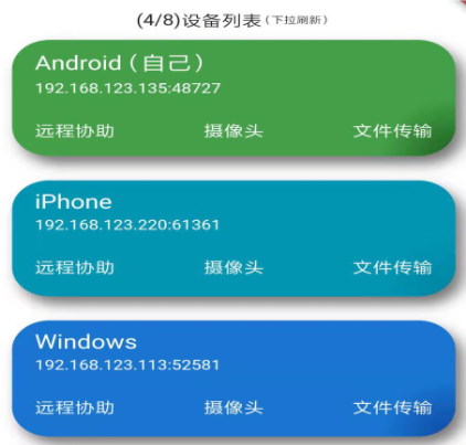 这款软件能实现手机、电脑的双端互相控制,可用手机去控制电脑的开启、关闭,也能在电脑上打开模拟器然后登陆其他人的手机界面,以此实现功能更加全面的手机相互远程控制,效果更加流畅加载速度也快,实现相互控制之后不论是去进行远程办公还是及时娱乐都会变得更加方便。