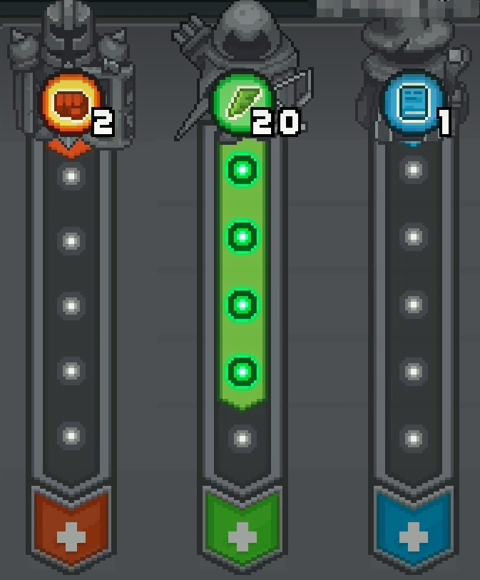 再来看守卫页的技能加点,第一排的坚决打击能让攻击晕人,还能被动增加减伤和减击退效果,建议点满,后面的“基础训练”能加三项基础属性,所以要点个两级。