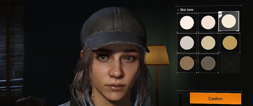 除了发型和发色之外,各位还可以调整自己的皮肤颜色,同时还可以对皮肤的粗糙程度进行设置,该项数值越高,那么各位捏出的角色皮肤也会显得更加沧桑;反之则会让皮肤显得更加顺滑。最后,大家还可以选择自己的常服,虽然在游戏中多数情况下玩家是需要穿戴战术装备的,但在一些剧情中,玩家操作的主角还是以常服示人的,因此这里各位也可以根据自己的喜好选择自己喜欢的穿搭。