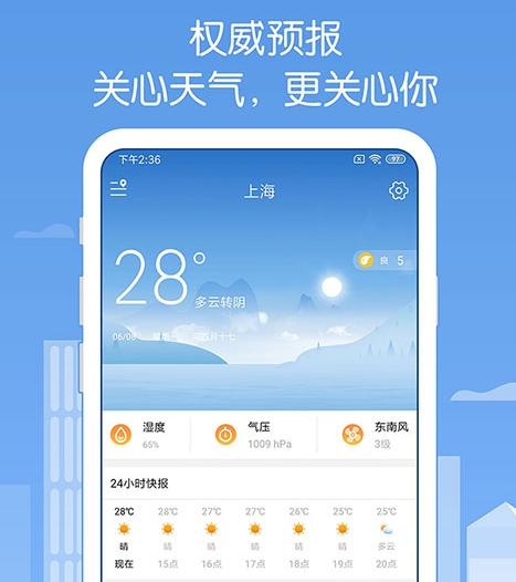 作为实时的天气预测软件,它能帮助用户合理安排生活,同时支持全国各地的天气查询,包括24小时的天气变化也能即使的了解到。