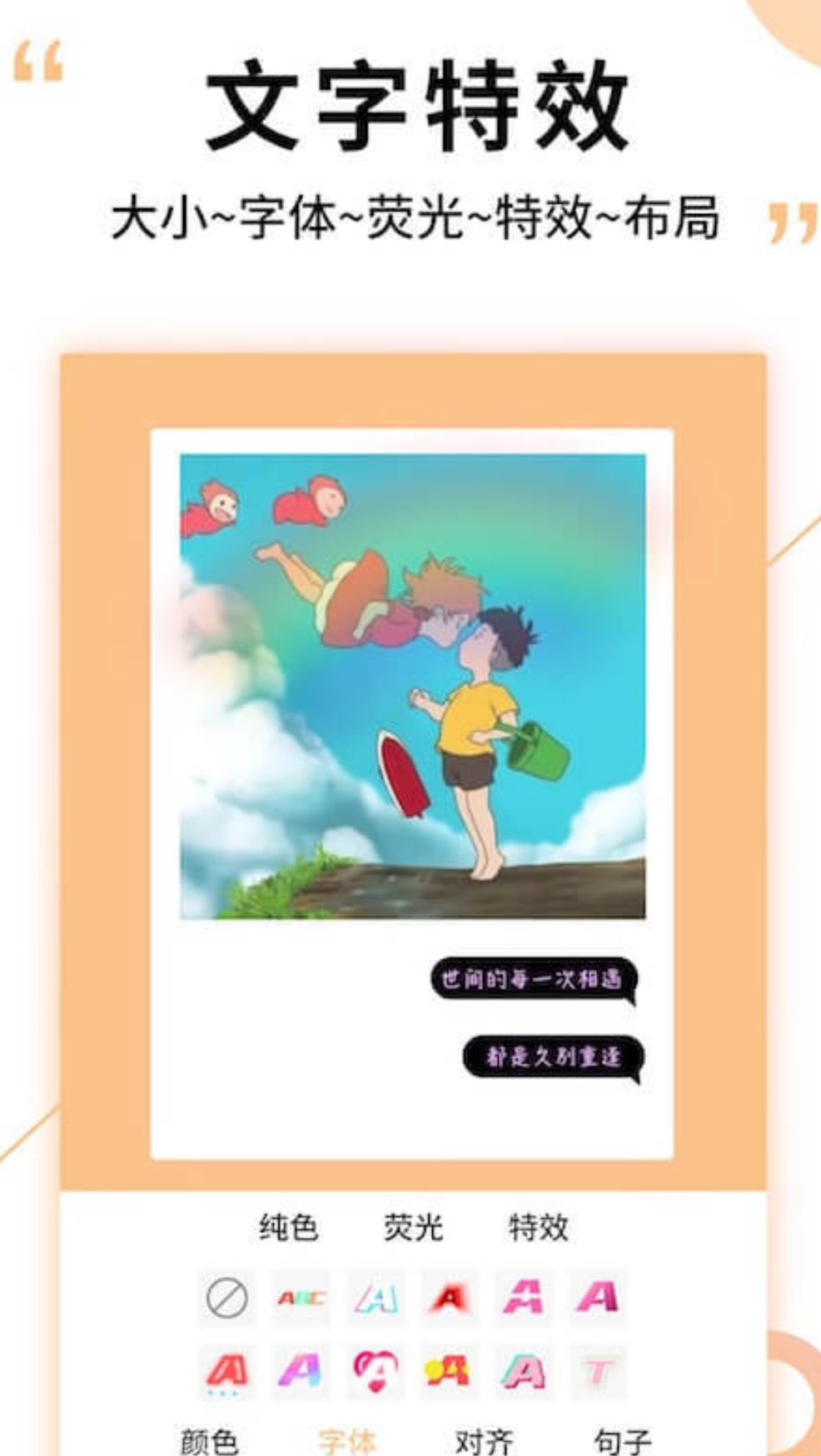 图片及文字精灵这款软件精致的操作面板,简单又不失美观,文字制作、文字特效以及文字背景等等功能全面,简单操作就能做出精美的图片,不仅如此还有个性滤镜和趣味贴纸等趣味功能。