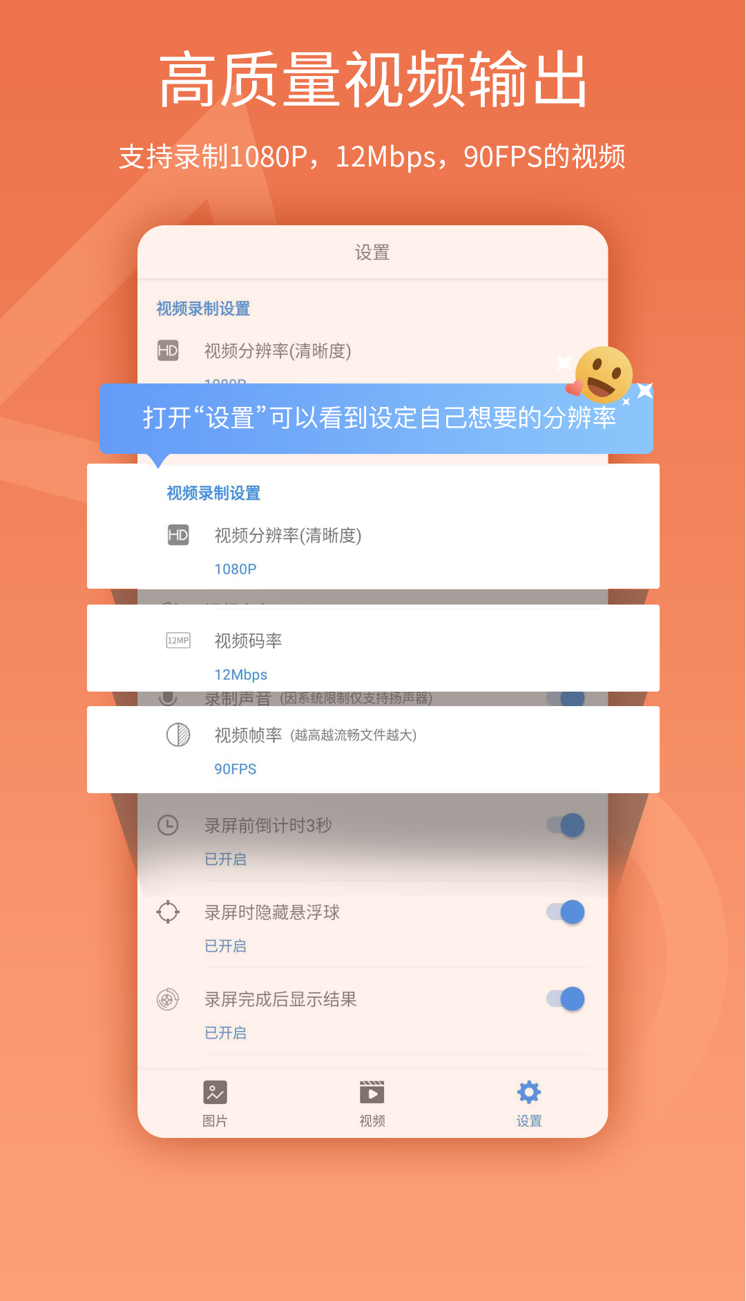 超清没有卡顿现象出现的录屏APP,录制的时长和次数都是没有时间限制的,像视频通话和游戏都可以轻松录制,为你提供了多种分辨率。