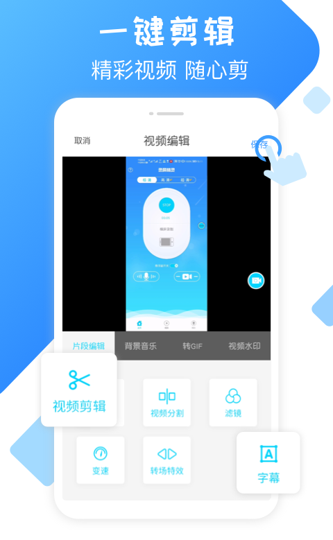 一键录制视频并剪辑视频的APP,录制声音视频和课件等都可以,还可以把短小的视频制作成GIF动画,好多主播也用这个APP练习直播。