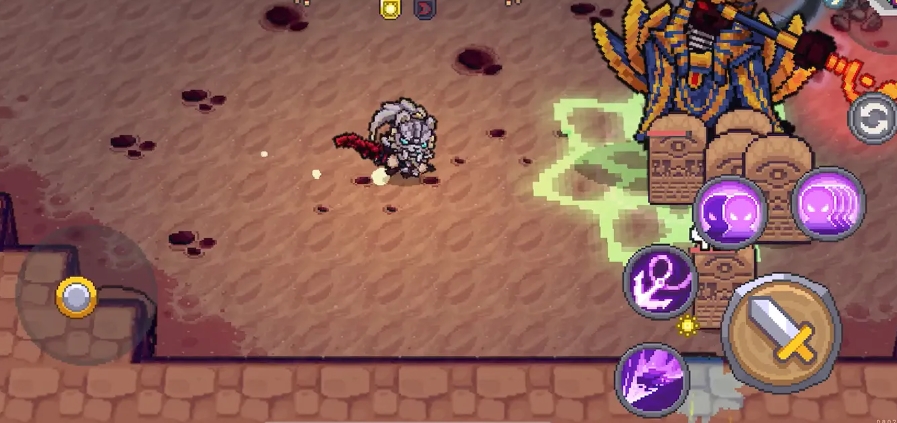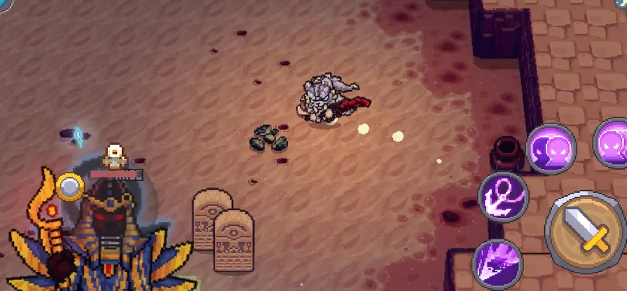 另外阿努比斯还能在玩家的头顶上召唤墓碑,墓碑会等待一段时间后朝玩家砸下来,砸击的这下很快,基本上很难做到躲闪,而且就算你躲过了第一段,它后续也会在你身边追加多段打击,因此可以留一些能躲伤害或者能提供减伤的技能去进行应对,当然,如果力量够高,血量够多,也是可以硬抗的。