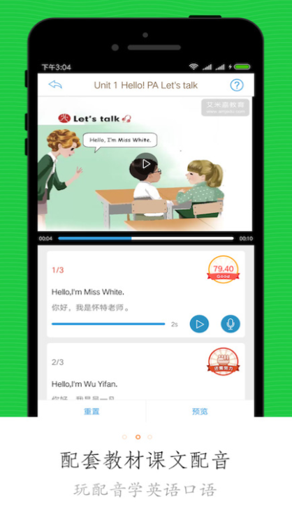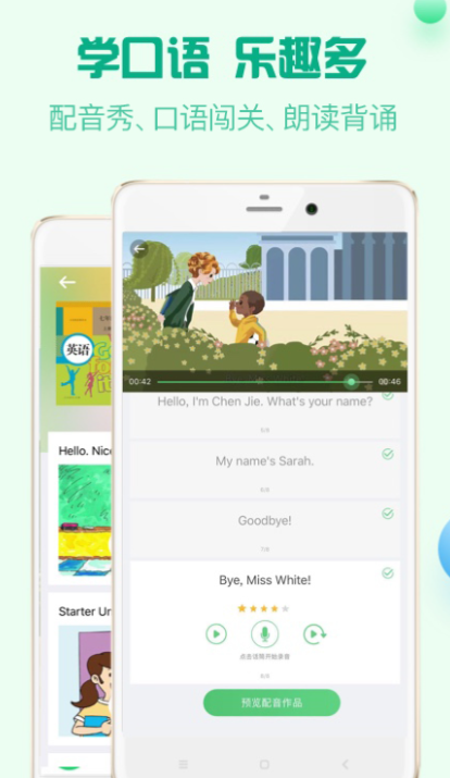 零基础的小学生可以再此软件中下载想要的英语教材,正好和老师教的课本配套。大家点读教材,跟着课本练习口语,平台会对大家的口语水平测评,一字一句打分。大家可以再平台中对好玩的英文视频配音,展示学习成果。