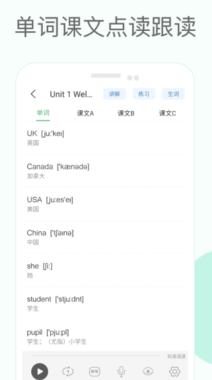 此平台专为小学生提供学习的平台,全国的各种版本都可以在软件中找到。大家在听课的时候,某单词的发音不能掌握或者单词、短语的用法不懂也没关系,平台有单词以及短语教学。