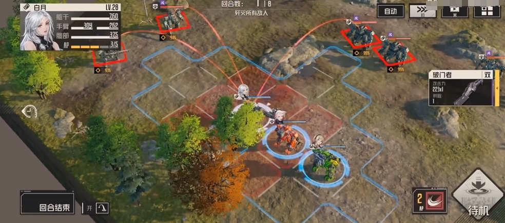 这个关卡一共是有8个回合的,在第四个回合中大家就必须将敌人全部都集中在一片区域之内,或者是呈现包围的站位,否则后期就不好打,在站位上面娜塔莉亚的射击范围也是比较远的,大家就可以利用这个角色跟白月一起配合进行输出哦。