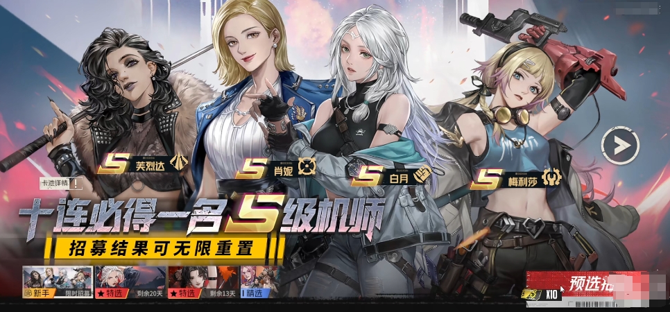 目前大家可以选择的就是白月、芙烈达、肖妮以及梅利莎,如果大家想要比较好的控制效果,其实选择白月是最好的,在上面大家选择白月之后是会有更多的队伍可以组成的,也算是一个生存能力比较强的角色,如果大家是想要输出能力比较高的角色也可以选择梅利莎。