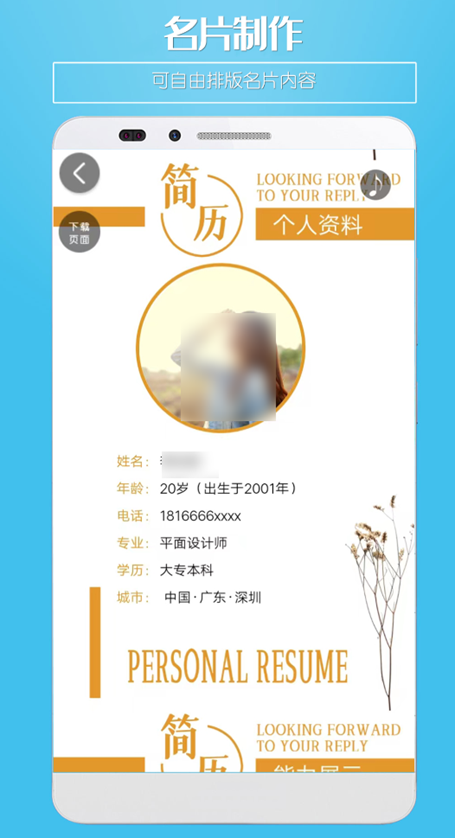 这款软件的功能比较齐全,在我们选择风格之后可以进行一键生成,大家需要做的就是修改其中的信息就可以了。软件的风格还是比较主流好看的,设计理念也十分前卫。