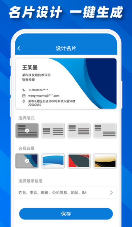 十分专业的手机电子名片制作工具,带有多种类型、尺寸以及样式自由选择,更是可以在其中制作个人简历或者是工作报告。软件还支持插入二维码,扫描直达工作聊天工具。