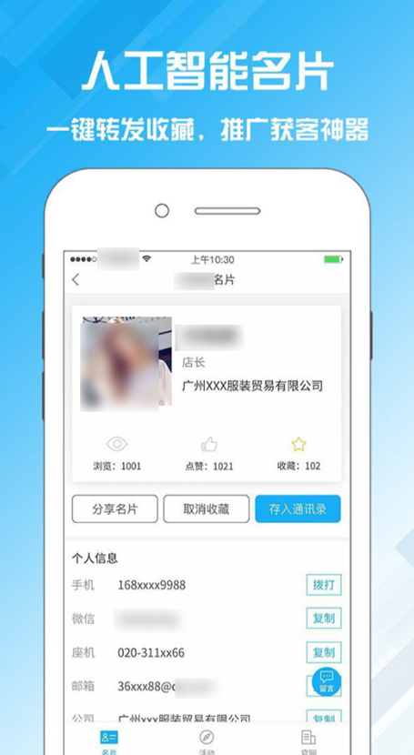 带有强大的AI管理技术,在扫描其他人的名片之后能自动加入通讯录中进行管理,我们也能够利用这款软件来进行制作并且一键分享给合作伙伴。